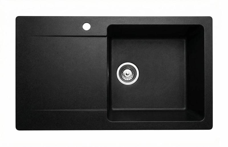 Deze elegante granieten spoelbak biedt een perfecte combinatie van duurzaamheid, stijl en gebruiksgemak – een hoogwaardige keuze voor elke moderne keuken.