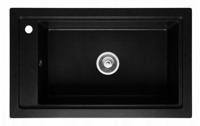 Graniteland Magra Granieten Zwart Spoelbak opbouw 686 x 427 mm met kraangatbank en RVS Plug 1208970616