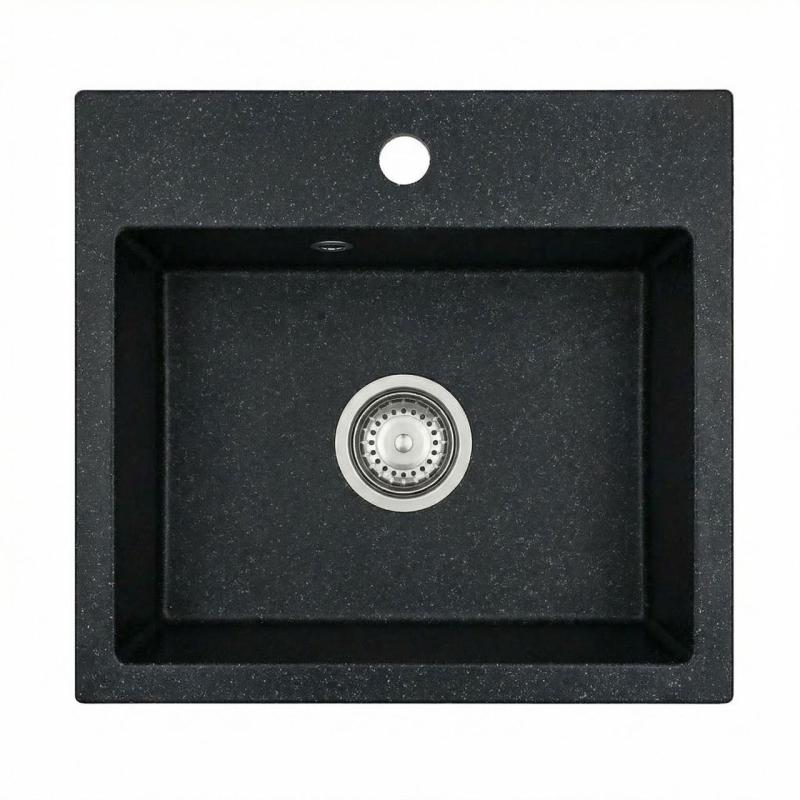 Graniteland Nera Granieten Spoelbak 45x42 cm Arduin hardsteen look Opbouw met Kraangatbank en RVS Plug 1208971432