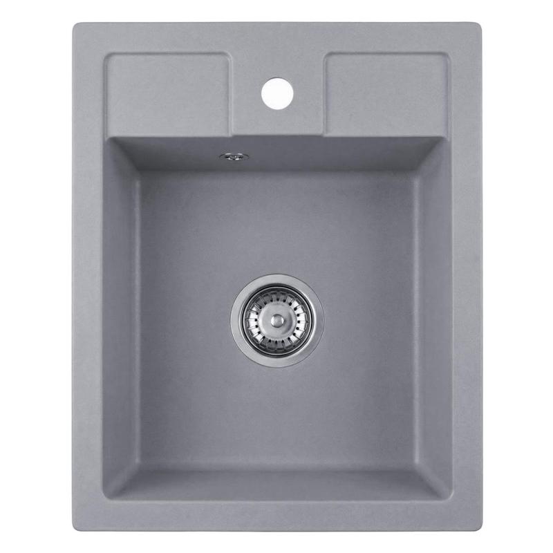 Graniteland Prest Granieten grijze spoelbak Tapwing met kraangatbank opbouw 400x500mm met RVS Plug 1208971425