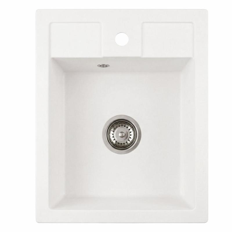 Graniteland Prest Granieten witte spoelbak Tapwing met kraangatbank opbouw 400x500mm met RVS Plug 1208971424