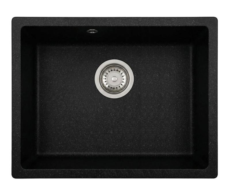 Graniteland Solo Granite black bluestone undermount sink 42x34 cm with stainless steel plug 1208970606
