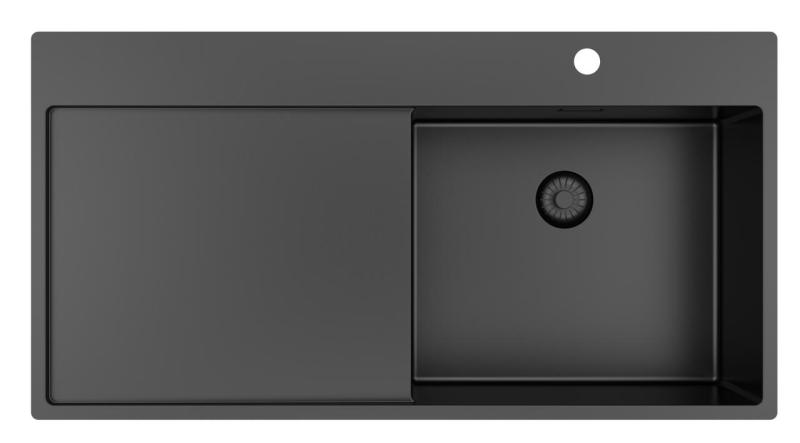Pure.Sink Exclusivo Gun metal spoelbak met afdruipgedeelte 100x52 cm Tapwing rechts PEX47100RT-61