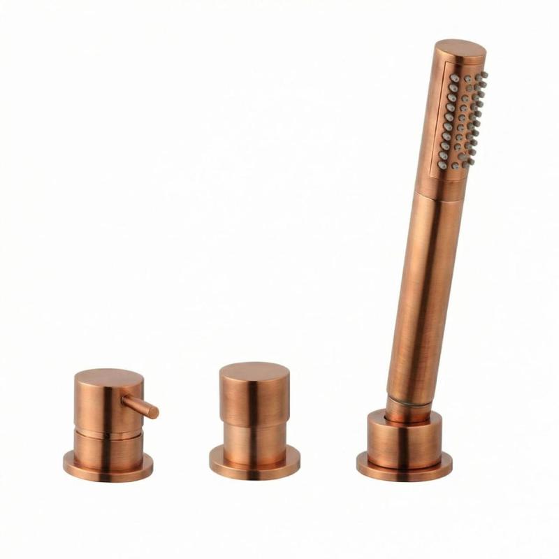 Waterevolution Flow 3-hole Bath Mixer for Bath Rim Installation PVD Brushed Copper T138SBCPE